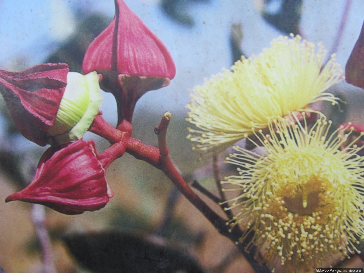 На стендах были представлены фото пустынной розы Стёрта (Gossypium sturtianum) и другого цветка.
