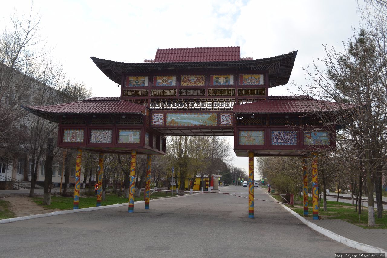 Золотые ворота, на которых в живописной форме показаны основные вехи истории калмыцкого народа.