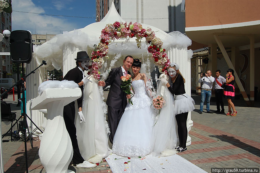 Настоящая феерия устроена для молодожёнов, ведь недаром я попал сюда в День Любви на Бульваре Роз. Белая палатка, где влюбленные пары встречают мимы