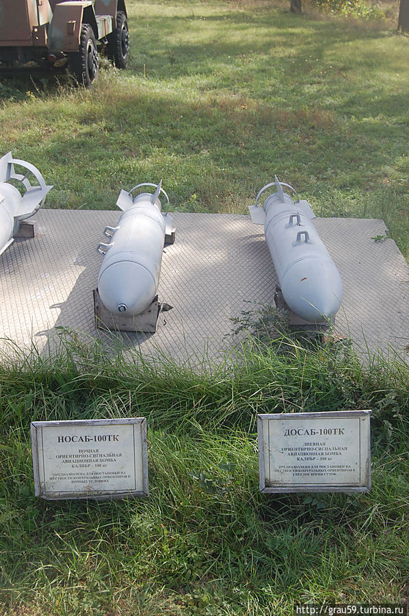 В начале экспозиции , но уже после самолётов АН-2 и АН- 24Т , находятся несколько авиабомб, от маленьких до больших.