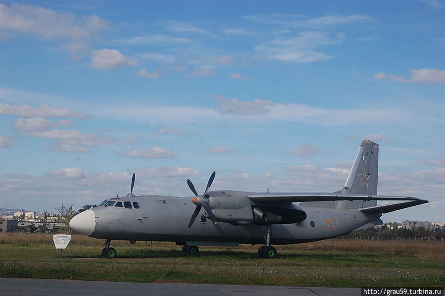 Мемориальная доска в честь О.К.Антонова. Создан на базе самолёта АН-24 Т. Серийно производился в г.Иркутск с 29 июля 1965 года.