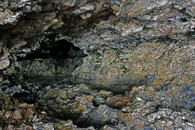 Да, чуть не забыл... Пока я лазил подглядывать за купающимися на пещерном пляже, наш сопровождающий показывал супруге и французу те самые "живые цветы", которые дали имя нашей пещере. Это оказались актинии, которые живут в лужах с морской водой, которыми изобилуют залы пещеры.