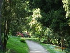 На грани перехода календарной весны в лето (напомню, что мы приехали сюда 28 мая), еще далеко не все розы развернули великолепие своих лепестков и не наполнили воздух мощью аромата. Только самые первые, шустрые, вносили яркие акценты на зеленый фон.