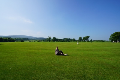 PS: к автостоянке с противоположной стороны от усадьбы примыкает гольф-клуб, о чем мы не сразу узнали и позволили себе попозировать на поле...
