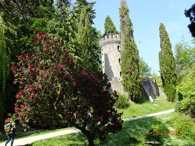 Но мы сначала не спускаясь сворачиваем на право, где за ажурной решеткой и зеленой стеной находится розарий. .
