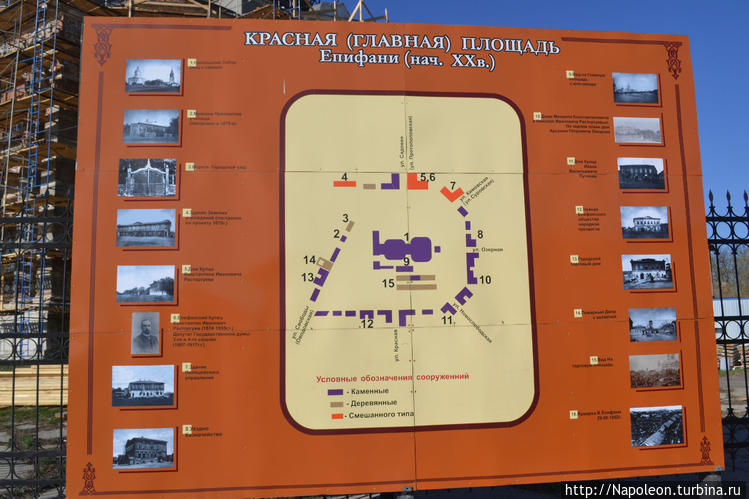 Вчера вечером я встретился с тем, кто меня сюда послал. Утром он проводил меня на автовокзал. Через несколько минут старый пазик вез мое тело в старое и интересное. Главная площадь (она же единственная) сего града величается Красной.Выписавшись из пазика, я посмотрел на местные расписания. Решил через три часа ехать на Богородицк. А пока тут чего посмотреть и натворить.