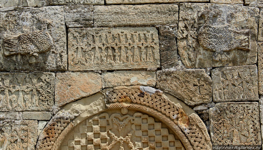 А здесь опять две птицы, а над ними солнце. Долгое время монахами интерпретировалось как Бог Отец – Бог Сын на небесах (два голубя и солнце). Один из армянских католикосов, по моему, не самый умный из них, приказал даже везде левую птицу посбивать, дабы усилить идею единобожия.