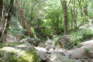 Пешее путешествие по достаточно разреженному и очень красивому лесу доставило огромное удовольствие. Удивило полное отсутствие тропинок. Здесь просто совсем нет людей, зверья тоже почти нет. Видимо, сильно подъели в голодные времена, пустой ореховый и дубовый лес это не типично. Лес без подлеска, много ручьев, удивительно красиво. Шли без груза, да еще под горку, удовольствие в чистом виде.
