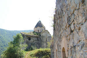 Если вы умеете переправляться через речки по двойными тросам (обезьяннику), перебравшись на другую сторону Трхи, можно добраться до старинной разрушенной церкви. У нас времени уже совсем не оставалось, возвращаться по этому бездорожью темноте ни у кого особого желания не было и мы быстрее поехали смотреть монастырь Ериц Манканц. Еще километров десять, но здесь дорога относительно прямая.