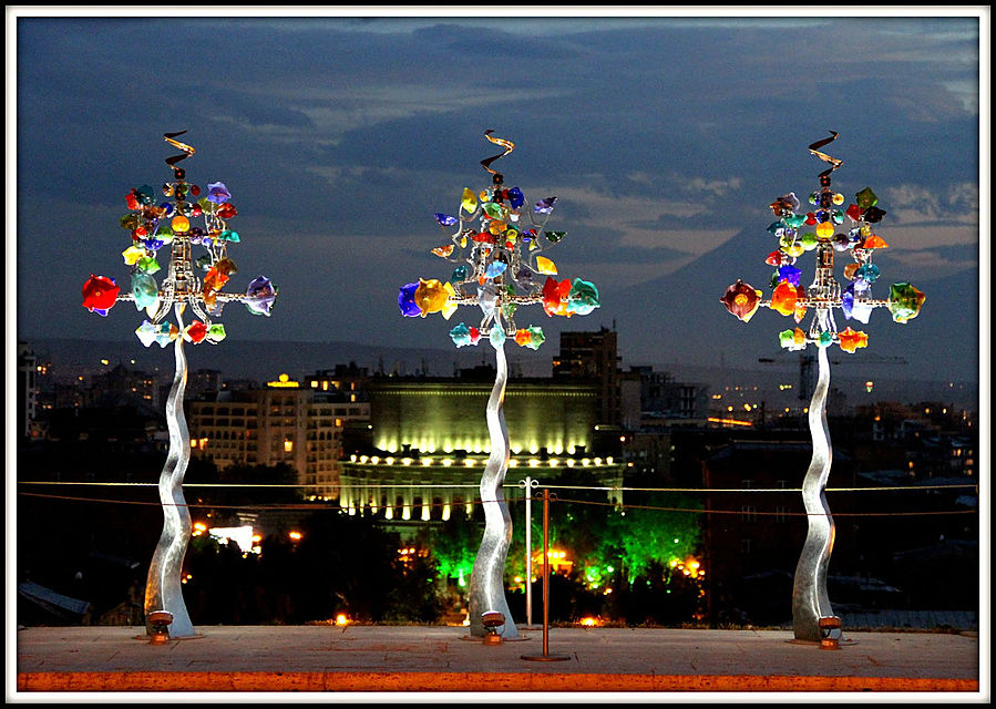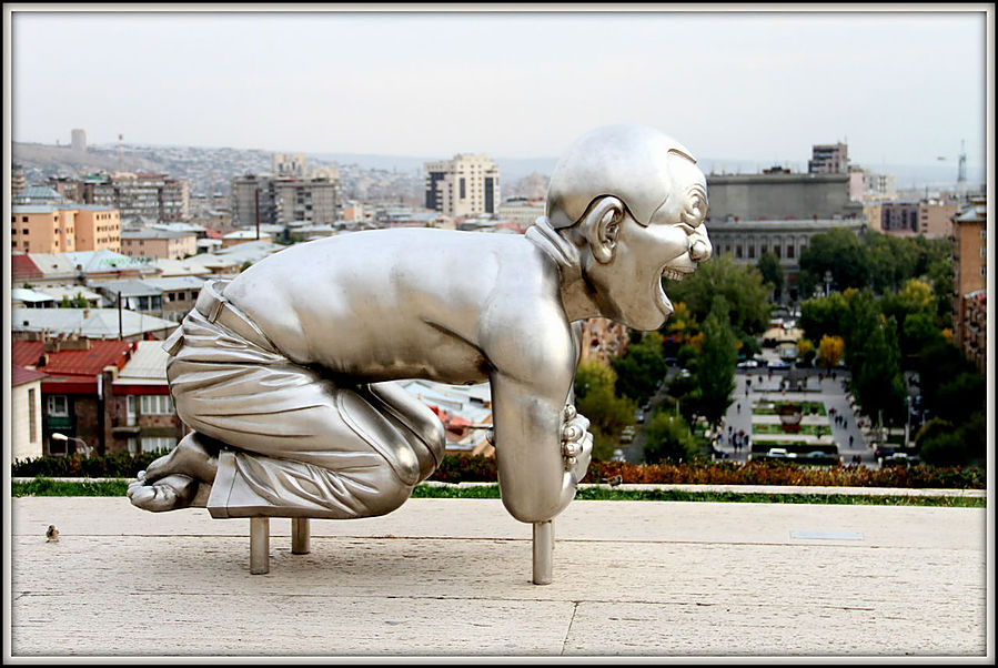 Мне, конечно, было интереснее подниматься пешком, ведь я имел возможность снимать Ереван с разных точек. К тому же на каждом уровне есть любопытные скульптуры.