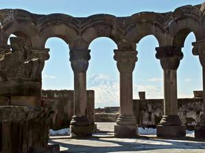 Недалеко от Эчмиадзина, рядом с ереванским аэропортом, находятся руины древнего Звартноца – храма Бдящих Сил. При виде этих загадочных развалин невольно вспоминаешь школьный учебник по истории СССР и первое государство на его территории – Урарту, которое, как все мы знаем, находилось на территории Армении. Так и представляется языческое капище, древние урартские жрецы и (аж кровь в жилах стынет!) человеческие жертвоприношения. На самом деле, строительство храма Бдящих Сил началось намного позже, "всего лишь" в 641–643 годах, когда Армения уже была христианским государством, и велось с перерывами на протяжении двадцати лет. Описания Звартноца не сохранилось, но известно, что ему было посвящено множество восторженных похвал.