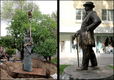На одной из улиц стал свидетелем установки нового изваяния в виде загадочной девушки. Так и не нашел кто это. А вот справа у этого мужчины была табличка. Александр Манташянц — выдающийся армянский благотворитель, меценат и промышленник.