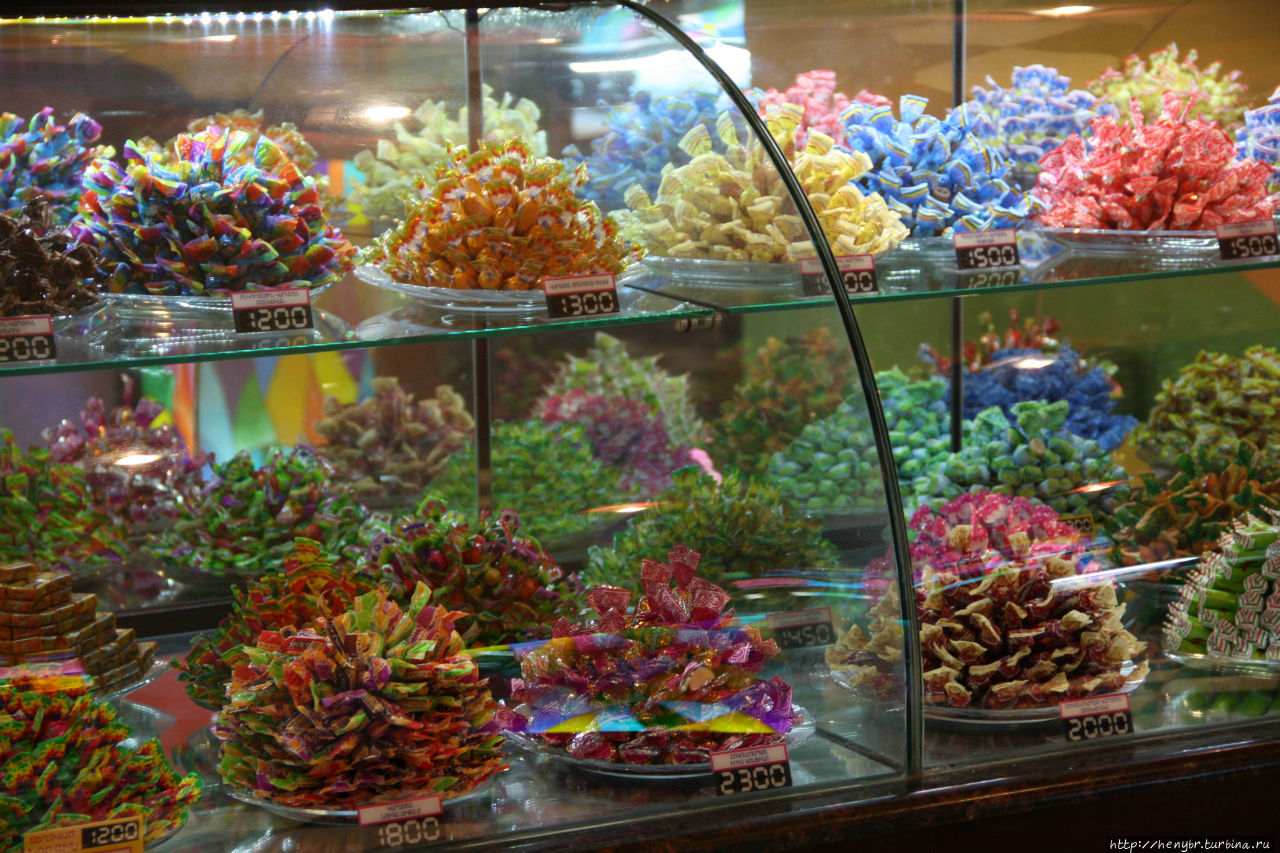 Внизу, на первом этаже,сладости. Наверху — столики, пончики, кофе. И под веселую музыку катается под потолком поезд. Просто прелесть, что такое.