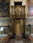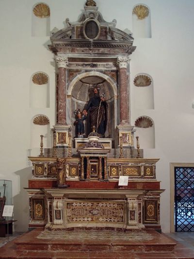 Здесь можно увидеть деревянный хор 1761 года — в главной часовне, старинные скульптуры, деревянное распятие 16 века, различные фрески и несколько ценных картин , включая Санта — Чечилия ангелы и святые и Мадонну делле Грацие конца 15 века.