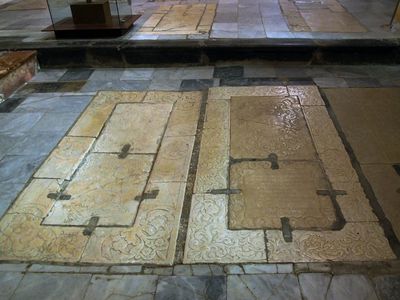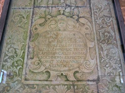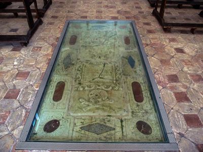 Интересен также церковный пол, частично сформированный из надгробий, начиная с семнадцатого и восемнадцатого веков, и украшенный плиткой с изображением оригинального плана храма в 1700 году.