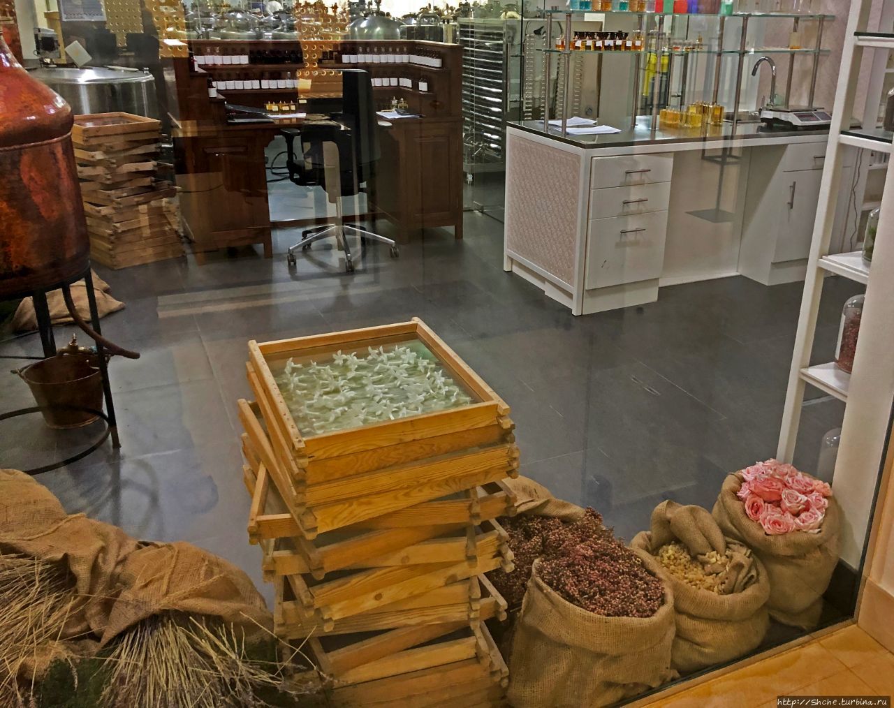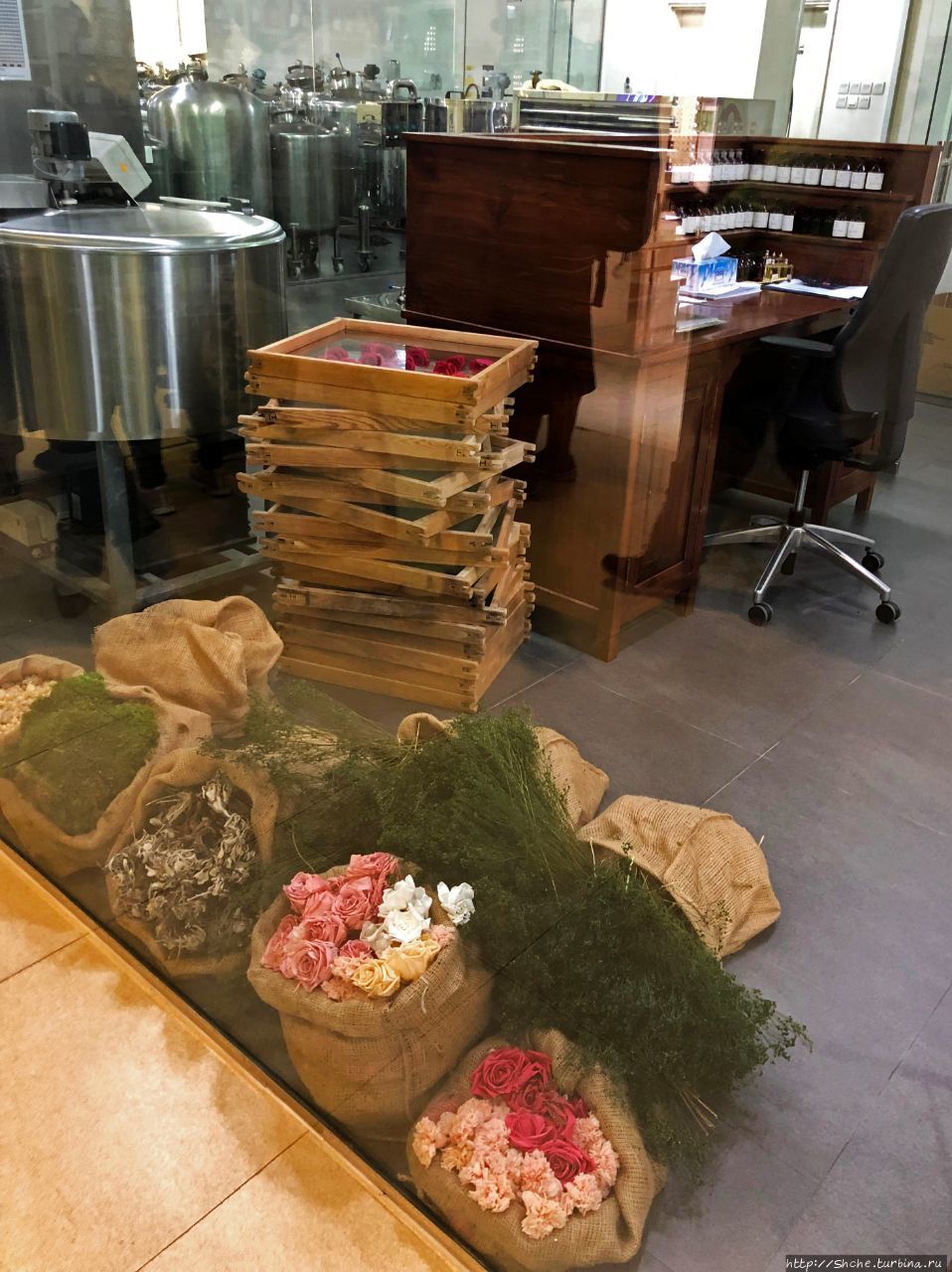 Далее нас провели в место, откуда можно увидеть частично производство и сырье, из которого получают естественные запахи...