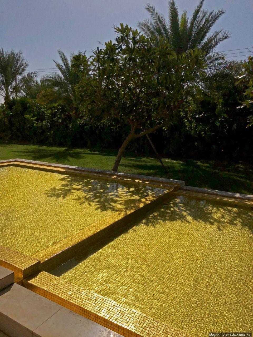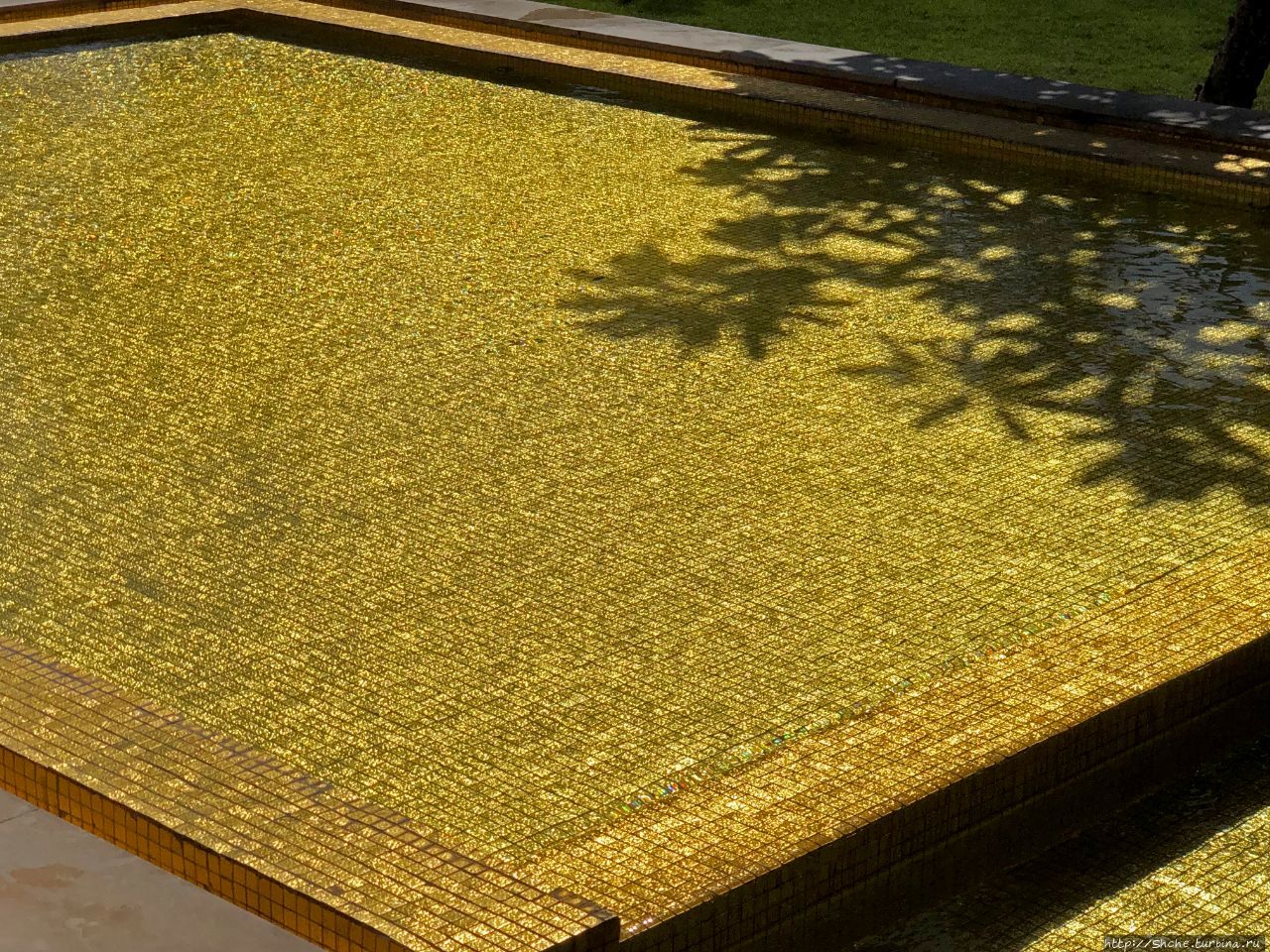 Декоративный бассейн, отделанный золотой плиткой, как бы настраивает на респектабельность этого места...