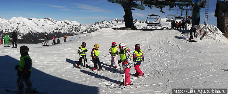 На склонах периодически встречаются группки из ребятни с инструкторами, некоторые фору могут дать и взрослым лыжникам.