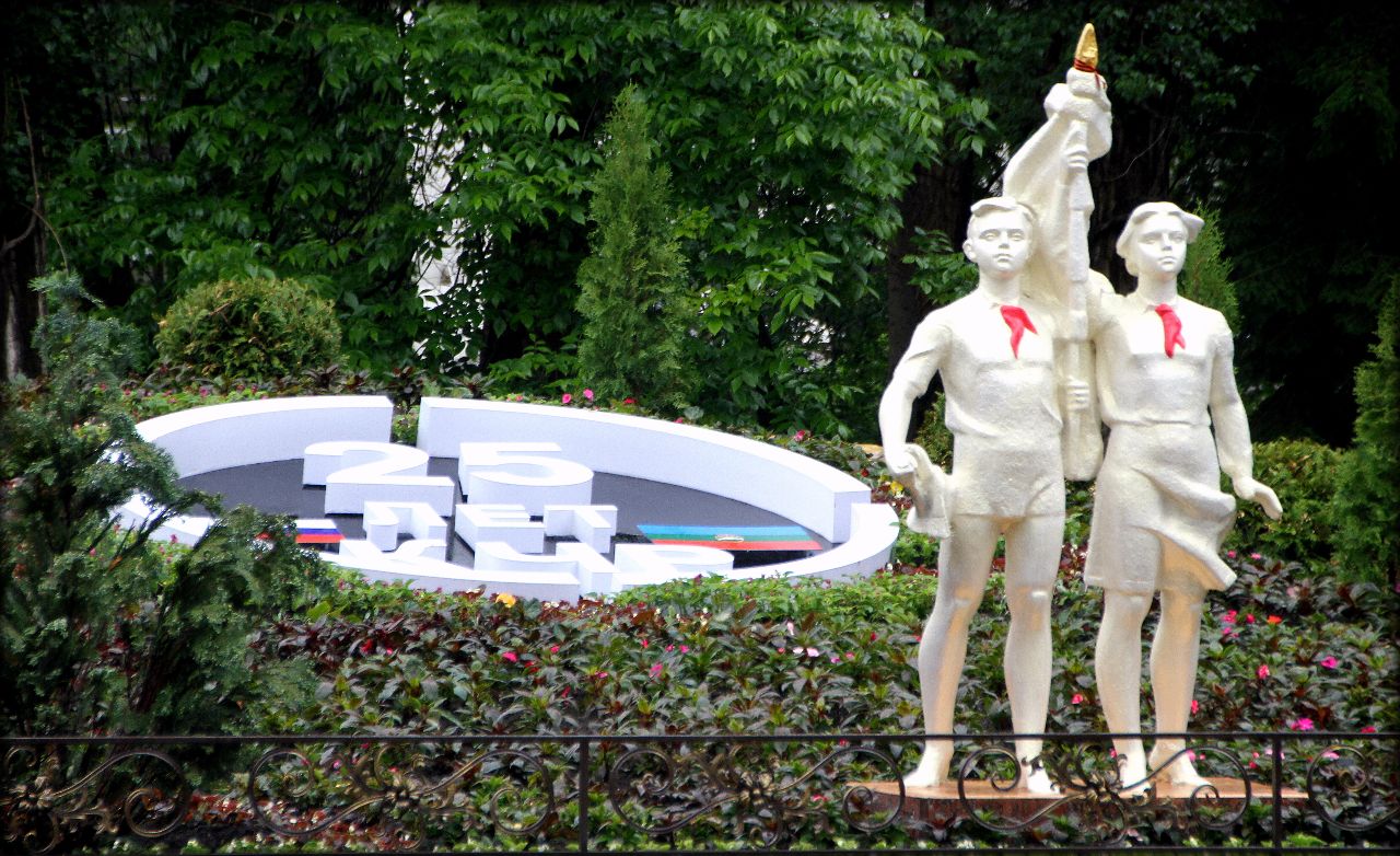 Катаясь по Черкесску я пытался найти две достопримечательности. Первая это парк Победы, где расположен красивый памятник воинам Советской Армии.