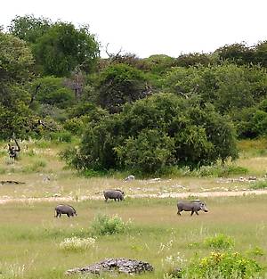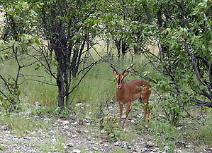 Восточная часть Этоши довольно существенно отличается от западной — больше воды, другая живность. В частности, попадались довольно любопытные небольшие носорожики размером с хорошо откормленную коротконогую овчарку, которые забавно бегали друг за другом на маленьких лапках, время от времени выкапывая клыками какой-то корешок и приглашая взглядом присоединиться. Также на востоке обитает эндемик Этоши — чернолицая Импала, а также самая мелкая антилопа в мире — Дамара дик-дик, размером не больше кролика:)