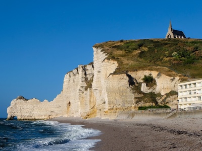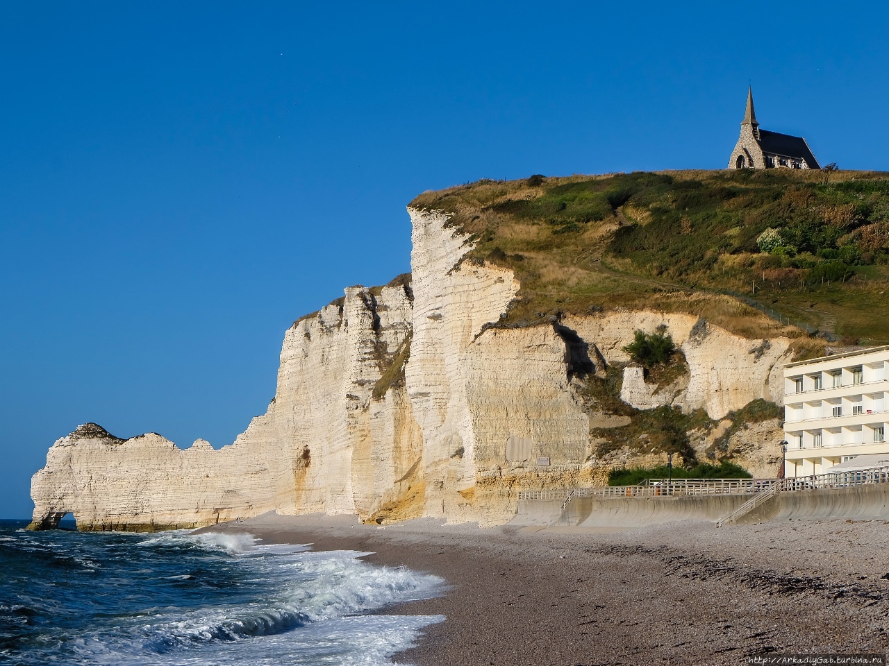 Не до легкой добычи стало ошалевшим от удивления викингам. Угомонив свое истомленное долгим плаванием либидо, они бросились ловить корабли, а красавица махнула им на прощанье хвостиком да и растворилась в невесть откуда взявшемся тумане. Вот так у Этреты появилась церковь Eglise Notre Dame de l'Assomption. У этой истории есть продолжение, объясняющее удаленность церкви от побережья и центра города, хотя я опасаюсь, что уже утомил вас историями о “высокой” любви.
