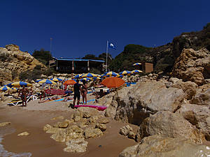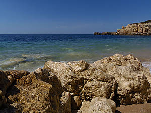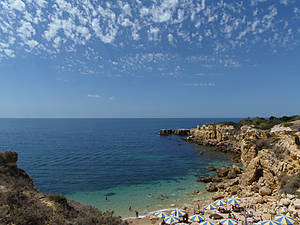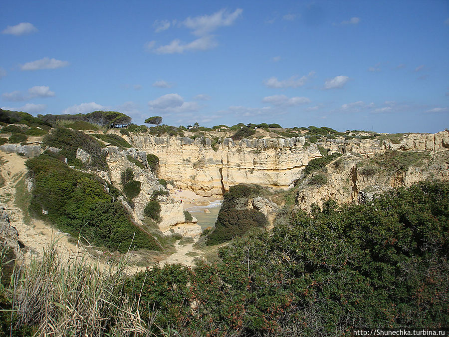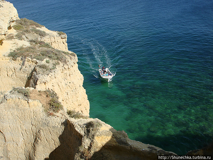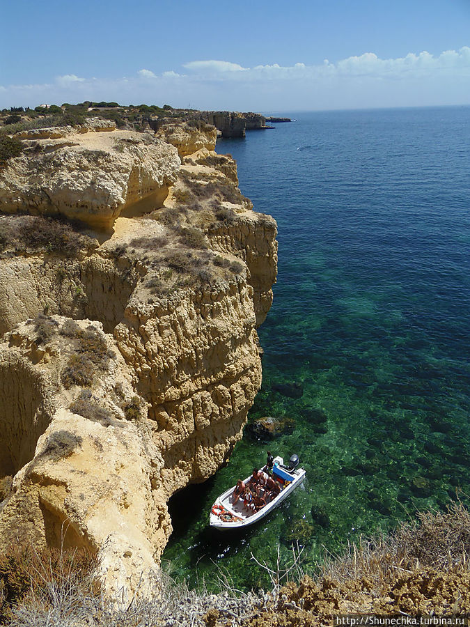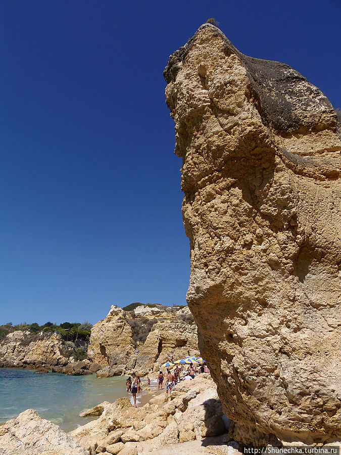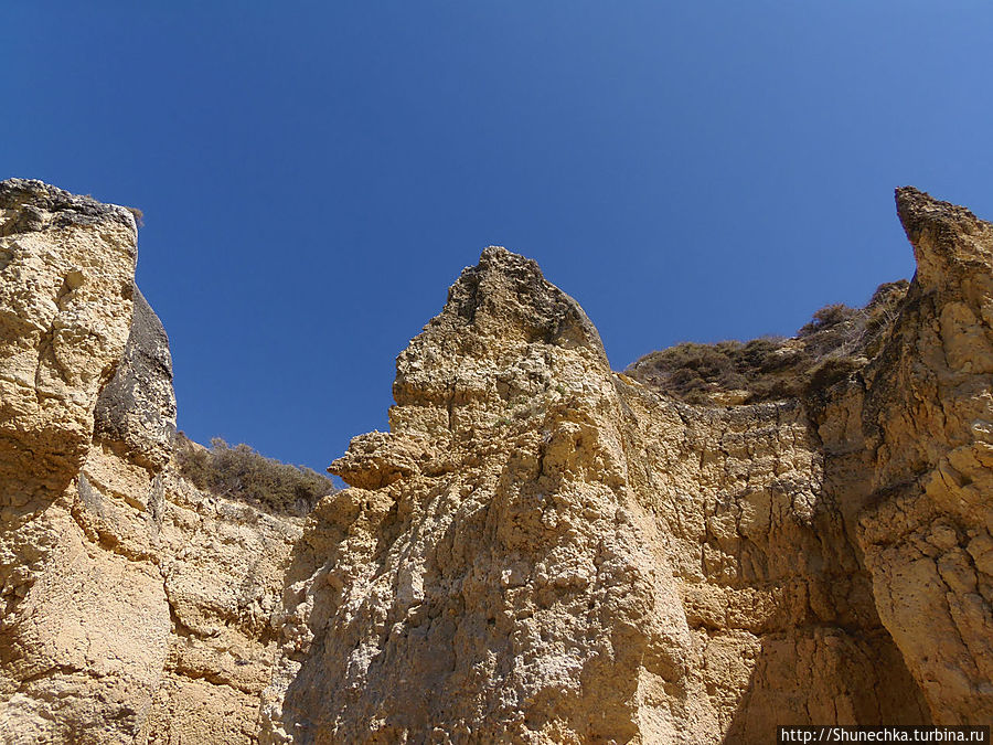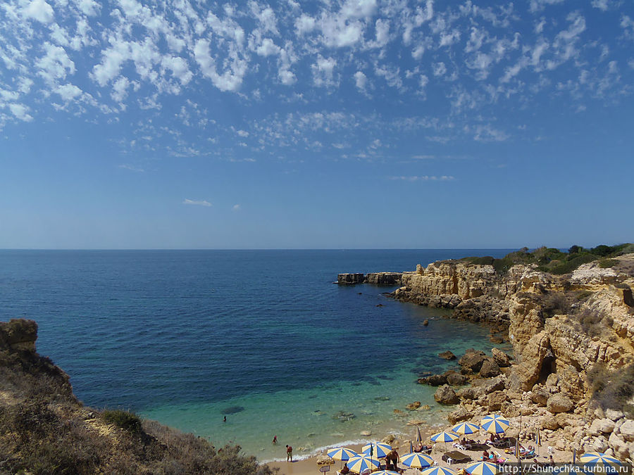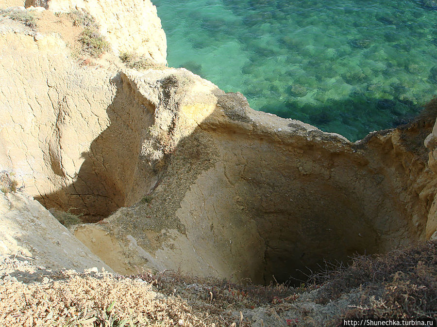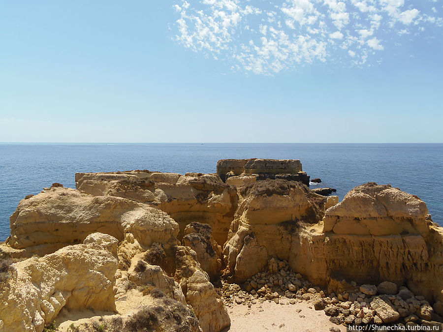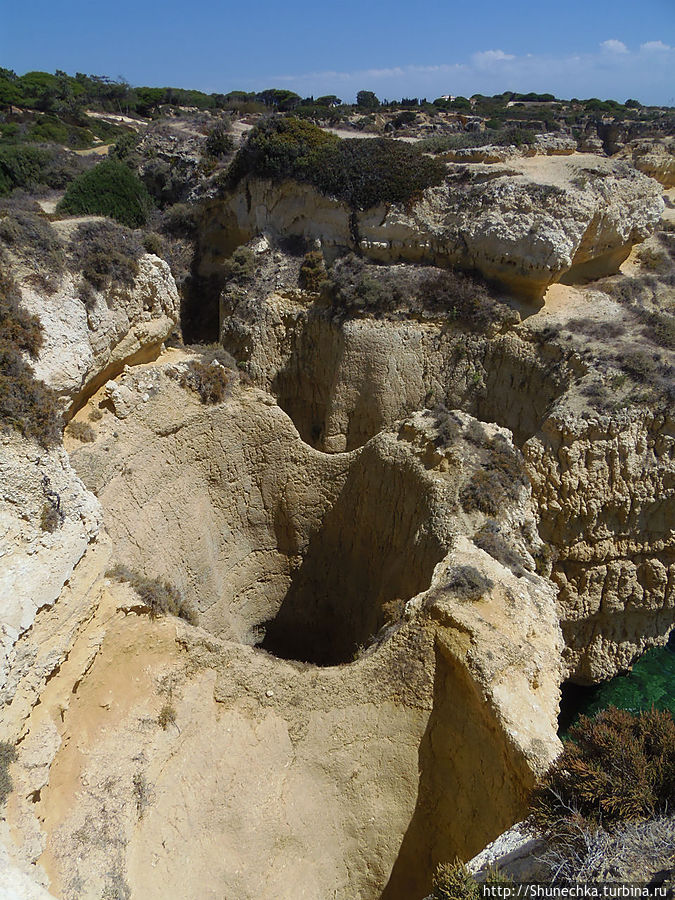 Отвесные скалы, которые имеют длинные узкие промоины, похожие на трубы. Отверстия в этих промоинах сквозные, то есть, если в них заглянуть, то вы увидите пучину волн. А если в них не заглядывать (потому что сделать это не просто), то можно просто послушать грохот волн, усиленный природными рупорами. Эти узкие сквозные дыры в скалах, которые здесь, на юге страны, не редкость, португальцы называют «algar». Осмелюсь предположить, что именно благодаря им и появилось название южного побережья – Алгарве.