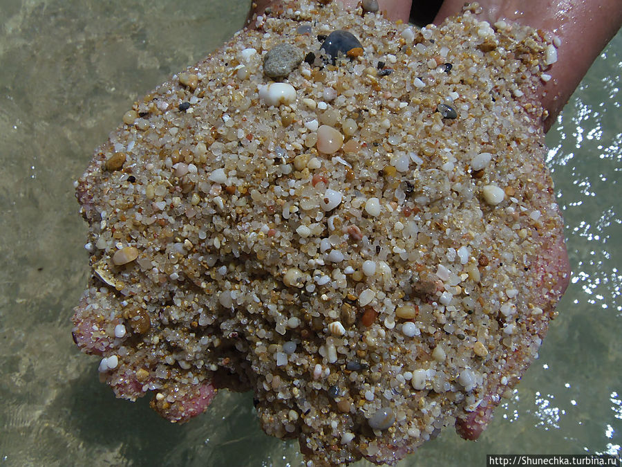 Маленький пляж с крупным песком. В период прилива на пляже с трудом разместиться два десятка человек.