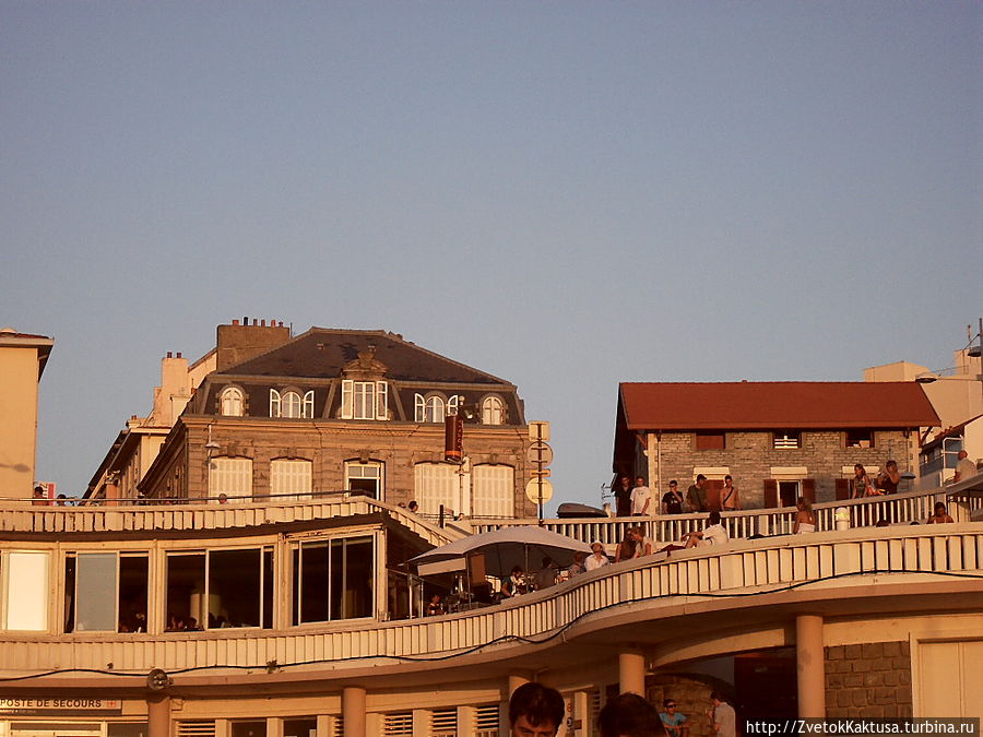 Это первый пляж по моему летнему маршруту 2012 года. Место известное, даже пафосное. Атлантика, Бискайский залив. Подъезжали во второй половине дня, ближе к вечеру. После непродолжительной экскурсии — сразу на пляж. Пляж не центральный, но со своим скрытым очарованием. На пляже — песок, по своей фактуре, цвету очень похожий на песчаные пляжи Крыма (Судак и пр.) Отделившись от нашей группы (которая прибилась к скале сбоку), я расположилась в самом центре, но поближе к воде. Был полнейший штиль. Вода.. бархатная...какое блаженство! Так как это залив, то солоноватость воды почти незаметна. (Средиземное море меня в этом смысле поразило, но об этом позже.) Рассекая водные просторы во всех направлениях, или изображая, как могла, из себя русалку, я в какой-то момент заметила, что... к моим скромным пожиткам подошла девушка из отдыхающих и уже протянула к ним свои руки. Wow! Я изо всех сил поплыла в сторону берега, но уже через пару мгновений всё поняла: она несколько переместила мои пожитки подальше от моря (оказывается, пока я пребывала в нирване, начался прибой), так же как и свои и своей подруги, с которой вместе отдыхала. Вот это да! Настоящее европейское поведение, любезность, гостеприимство. Очень трогательно...И с подобными проявлениями заботы по отношению к "посторонним" я встречалась нередко. Когда я закончила свои купания и выбралась на берег, то, конечно, поблагодарила — на французском языке!- эту славную барышню.
