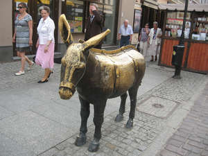 Торунь — красивейший старинный город на берегу Вислы. Шляпа и трость рассеянного профессора, который караулит собачка Филюсь.