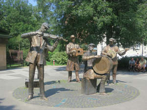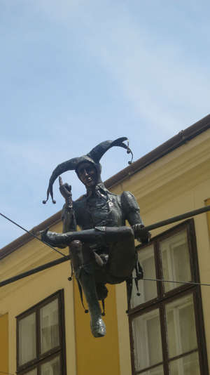 И в заключение о Венгрии две скульптуры из Секешфехервара — бабушка с тележкой и уличный акробат на канате