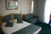 В отеле есть 2 типа номеров. Стандартные – обычные номера небольшого размера, в общем-то без изысков, но все самое необходимое присутствует. Также есть номера большего размера с кухней, за которые берут доплату 15-20$ в сутки. И те, и другие номера можно бронировать с балконом и видом на бассейн, но за это придется доплатить еще порядка 20-30$ в сутки. Все номера не очень современные, но чистые и аккуратные, находятся в хорошем состоянии, ничего не сломано, не разболтано и т.д. В общем, никаких проблем для достаточно комфортного проживания.