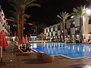 Сервис в отеле La Playa на на уровне — вполне соответствует отелю 3*. Территория маленькая — бассейн во внутреннем "дворике" и немного пространства вокруг него. Это далеко не худший вариант — в некоторых отелях и того нет... Расположен отель на 3-й линии — также как и самый популярный эйлатский трехзвездочный отель Americana. До моря минут 10-12 спокойным шагом.