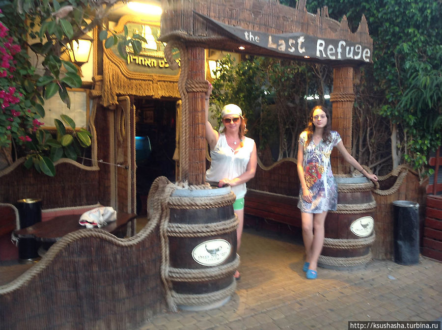 И, наконец, эйлатские рестораны. Тут и советовать нечего, раз город на море. Почти везде вы найдёте прекрасный выбор свежайшей рыбы ( Амнон, Денис — эйлатская рыбка) и морепродуктов. Ну, ладно, всё же *Совет№8* Нам очень нравится кухня и оформление ресторана Последний Приют.