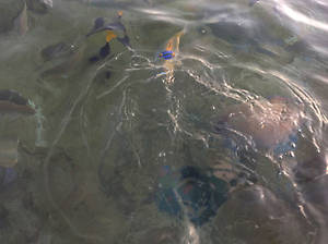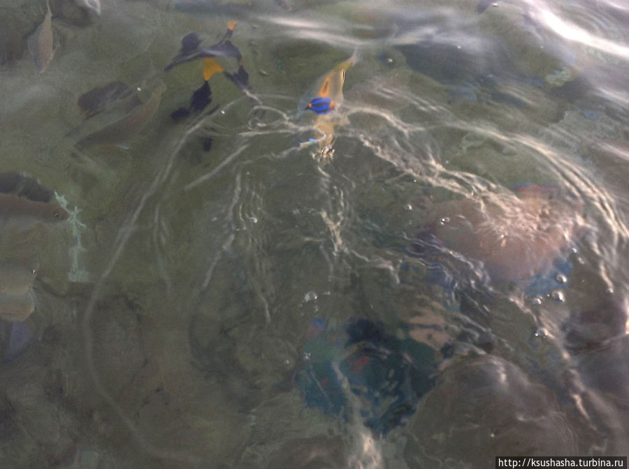 Хотя рыбок кормить запрещено, я советую зайти в воду и украдкой рассыпать совсем маленький кусочек булочки — просто посмотреть, как вокруг вас вода буквально "закипит" от рыбок.
