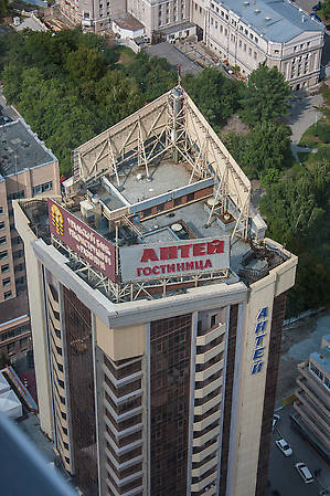 Очень часто из-за стекла фотография получается с нежелательными артефактами, но что поделать, через щелку между стеклянным ограждением и зданием снимать не вариант.