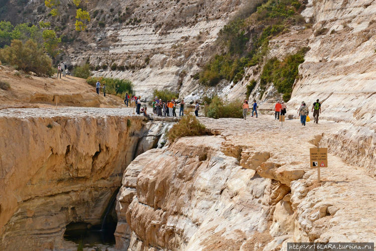 Собственно река Цин становится рекой только в редкие моменты, когда в этих местах идет ливень, в остальные времена по руслу течет вода из ручья Эйн-Авдат, к истокам которого и ведет эта дорога, а затем тропа. Вход в заповедник за небольшую плату. Страна у нас маленькая, ну и заповедник тоже миниатюрный. Машины и автобусы остаются на парковке, далее пешком. Маршрут до водопада совсем не сложный и не длинный, доступен любому возрасту, но только до водопада, далее сложнее.