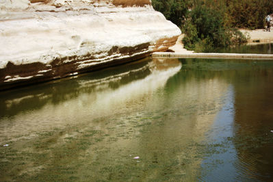 От камней веет теплом, но для пустыни 28 градусов – еще не жара. Сначала идти легко, но постепенно проход между скалами сужается, тропа становится каменистой, появляется вода. Совсем немного, потом больше и, наконец, превращается в речку, может и не глубокую, но зато с водой.