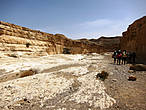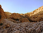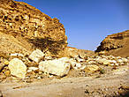 Позвольте, а где же вода? А вода в этой речке бывает только во время дождей. Земля в пустыне воду не впитывает, поэтому стекает водичка с высоты 700 метров и прямо в мертвое море, которое находится, как известно, на высоте -400 метров. Поэтому, когда есть дождь, эта дорога непроходима, вода стремительно несется вниз. Сейчас, когда воды нет, идти можно, но трудно. И не потому, что маршрут "средней сложности для опытных туристов", а потому, что 5 часов при температуре 45 градусов с рюкзаками по пустыне…