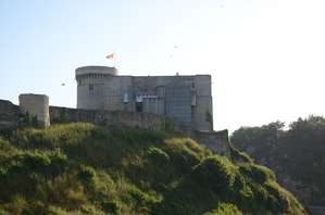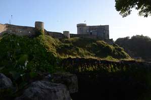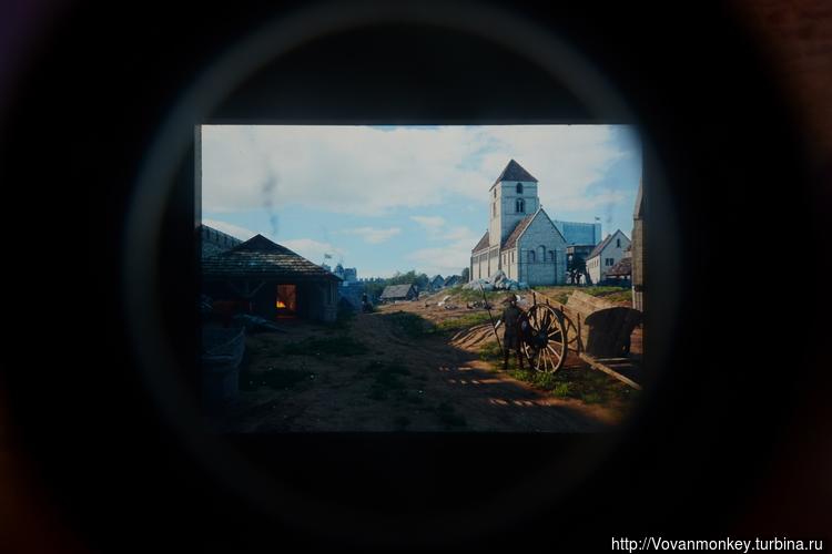 В Фалез же мы приехали вечером, сам замок был открыт, но донжон уже, к сожалению, нет, поэтому просто побродили по территории. В сторожевой башне у входа бесконечно крутится небольшой фильм о том, как развивался и приходил в упадок замок. Местами установлены забавные бинокли: смотришь в определённое место, нажимаешь ручку и появляется слайд, как оно выглядело во времена Вильгельма. Даже получилось сфотать.