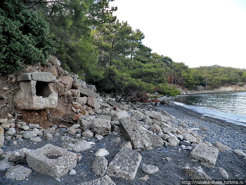 В Фазелисе много сосен, воздух очень чистый. В бухте можно искупаться, вода в ней немного теплее, чем в Кемере.