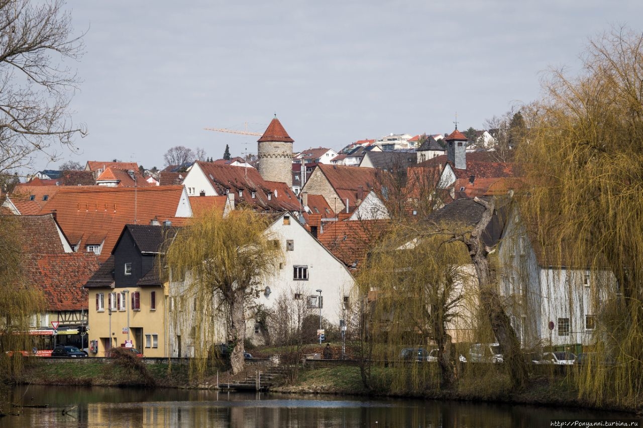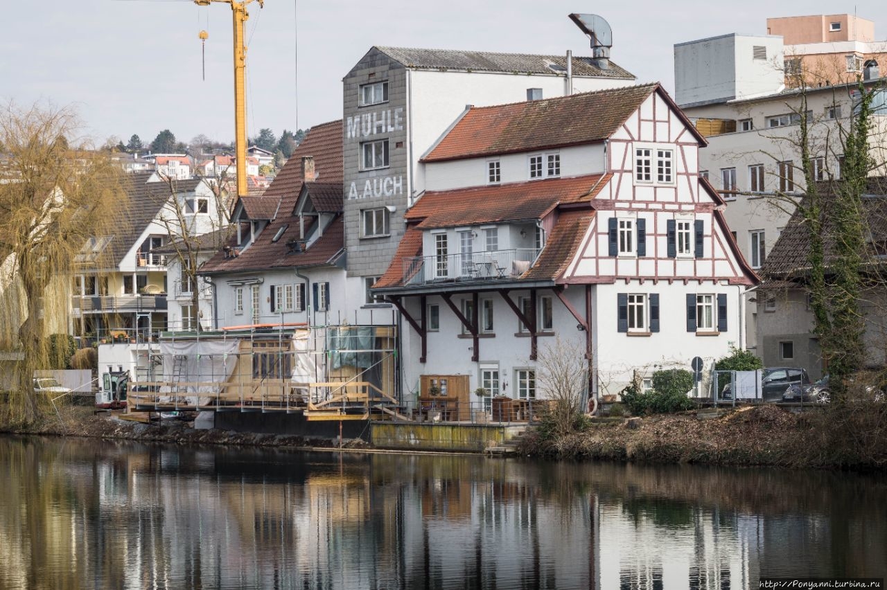 Через город протекает река Енц.На реке издавна строили мельницы и город славился своей мукой. Сейчас мельница на берегу только одна и она уже не водяная. Но в старом здании есть магазинчик , где можно купить отличную муку и свежую выпечку. Еще городок известен своей кондитерской фабрикой Юнг, одной из старейших в Германии. Продукция этой фирмы известна во всем мире — это желейно-мармеладные конфеты разной формы,карамель, орехи в разной глзури и многое другое. Есть фабричый музей и огромный магазин. Жаль, что мы приехали в воскресенье и было закрыто.