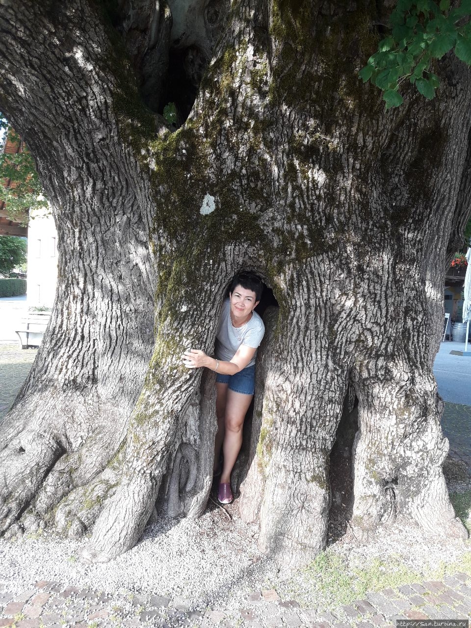 Прямо посреди деревеньки растет огромная тысячелетняя липа. Дерево традиционно считается здесь "счастливым местом".Она настолько большая, что в ее корнях есть дупло, в которое можно войти. Прямо как Алиса в Страну чудес! А чуть подальше какой-то человек с добрым сердцем разбил огородик. При входе стоит табличка, на которой написано, что в огородик можно заходить и всем любоваться, но просьба ничего не портить и не рвать, чтобы и другие могли полюбоваться. Стоит лавочка и милые таблички с названиями растений. Все эти владения охраняет очень серьезный кот.