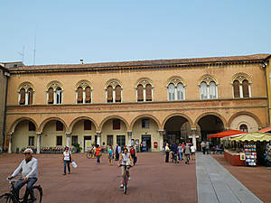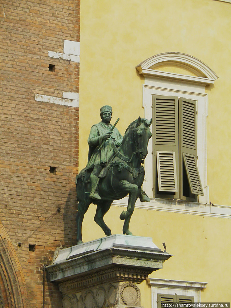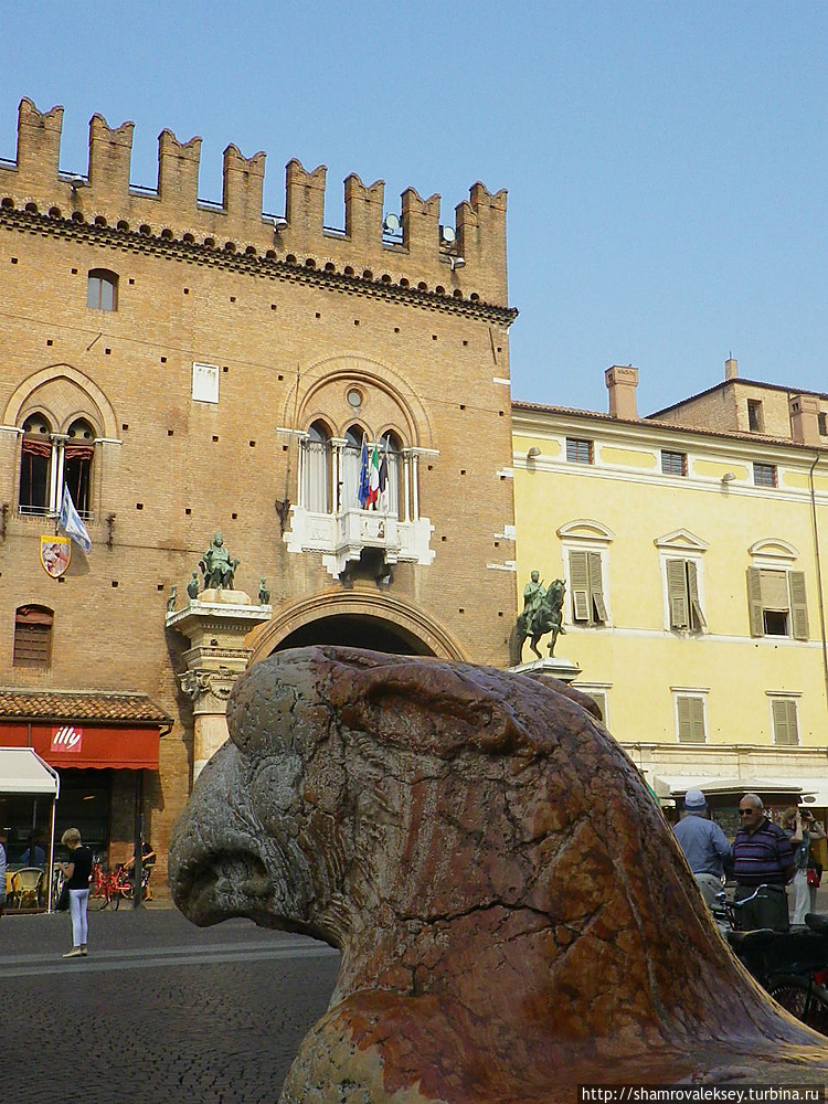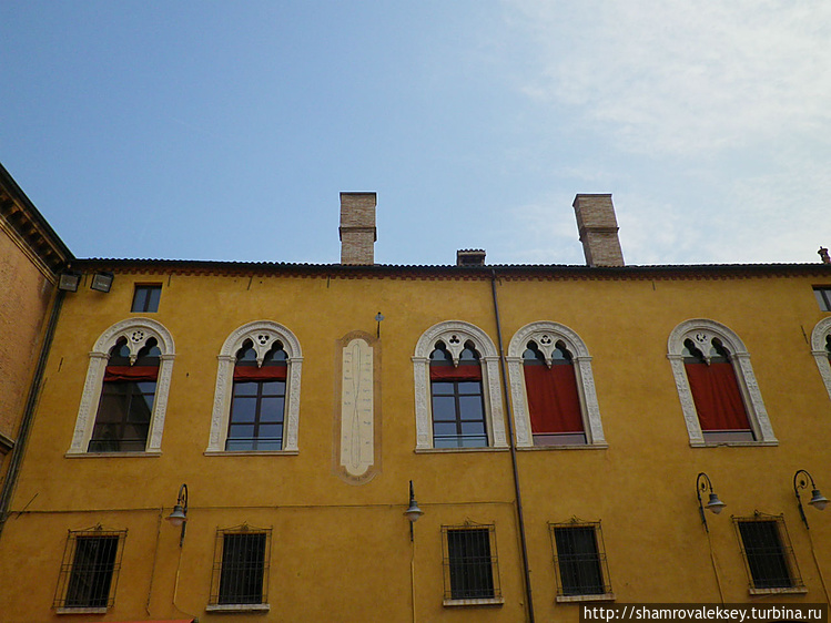 куда выходят окна личных покоев правителей Феррары, подняться в которые можно по двухпролётной лестнице Почета.