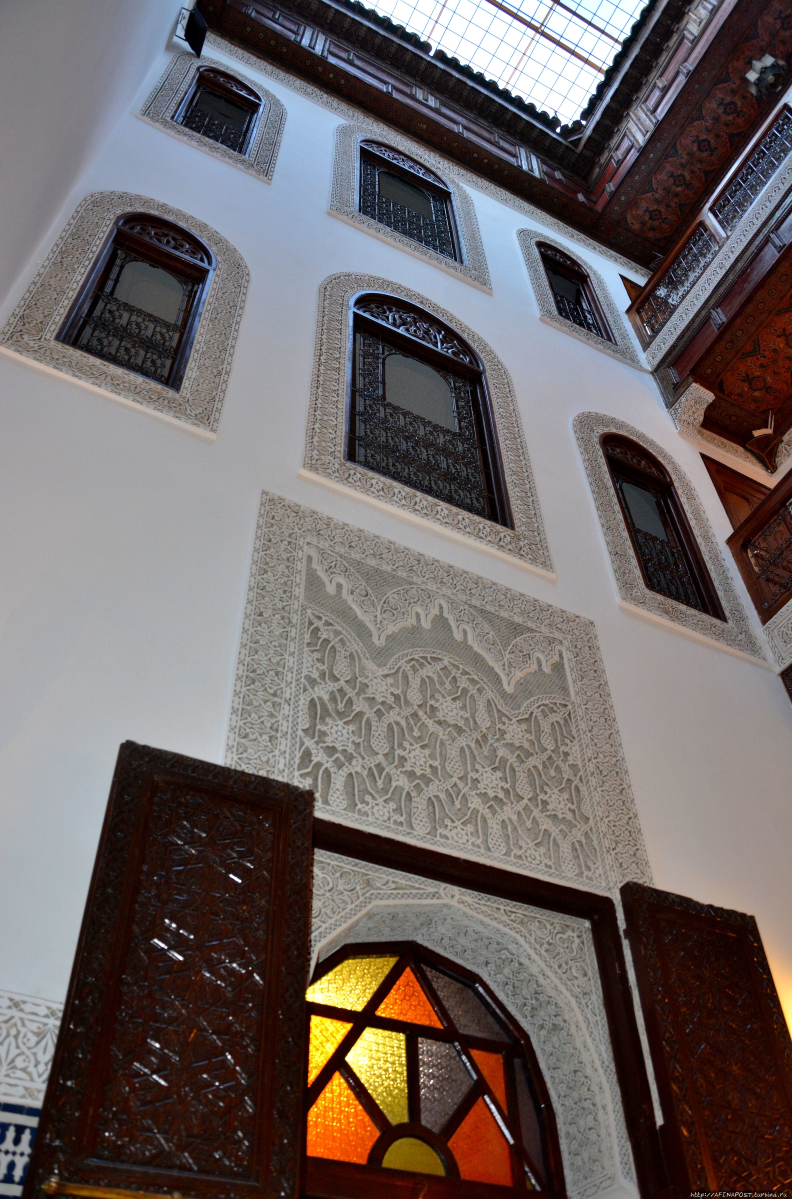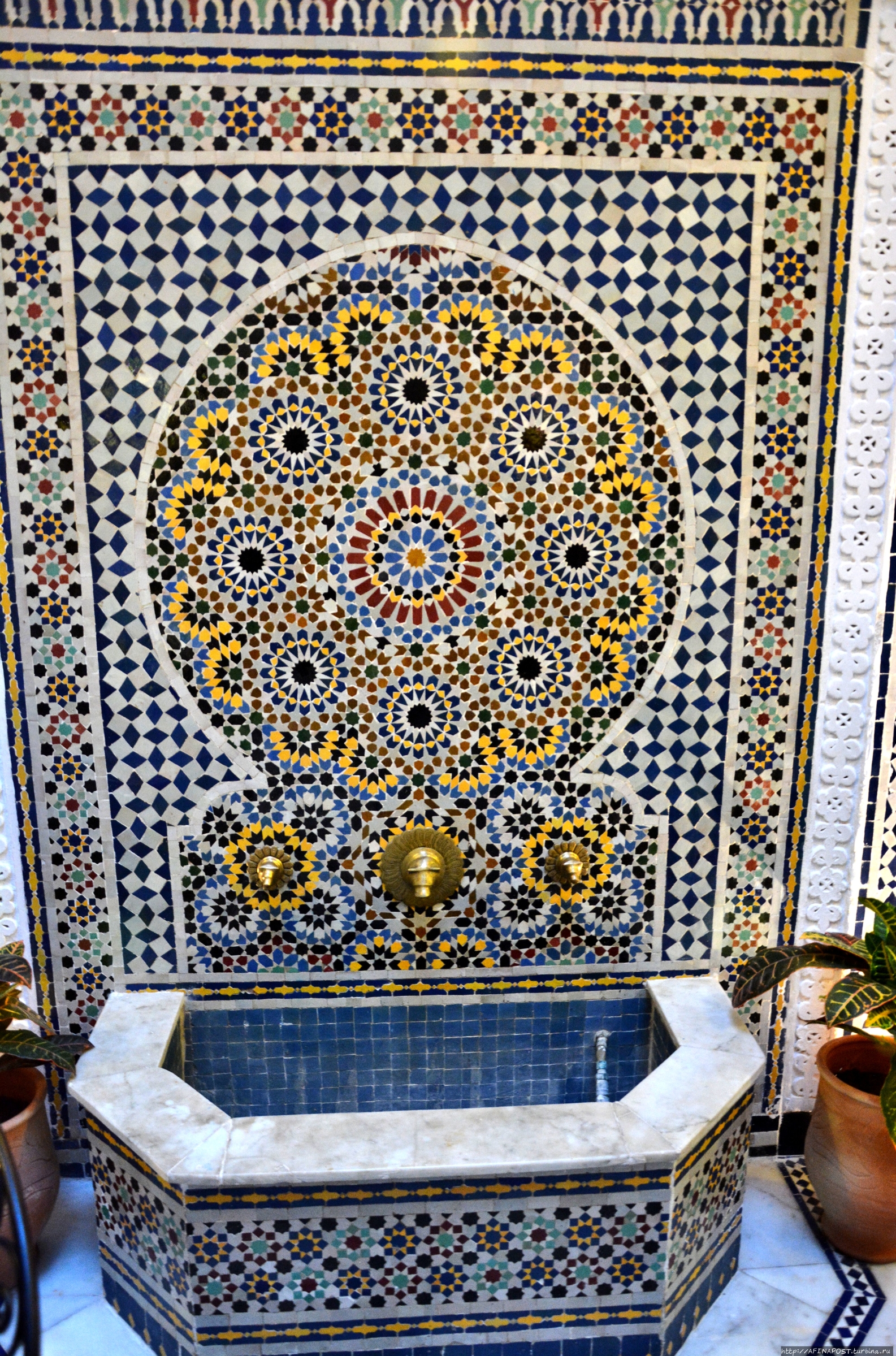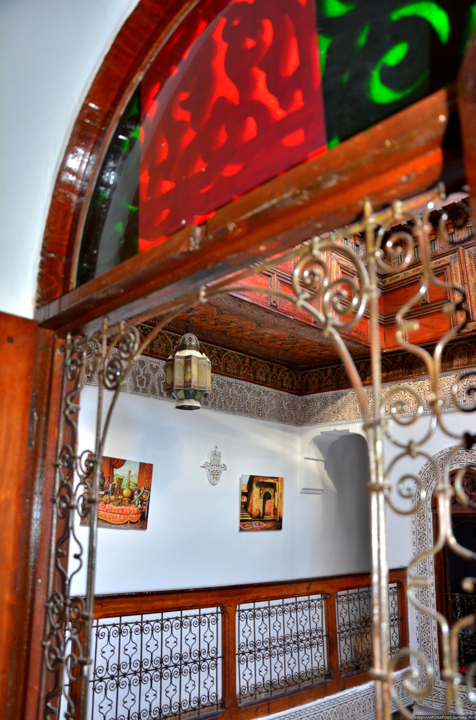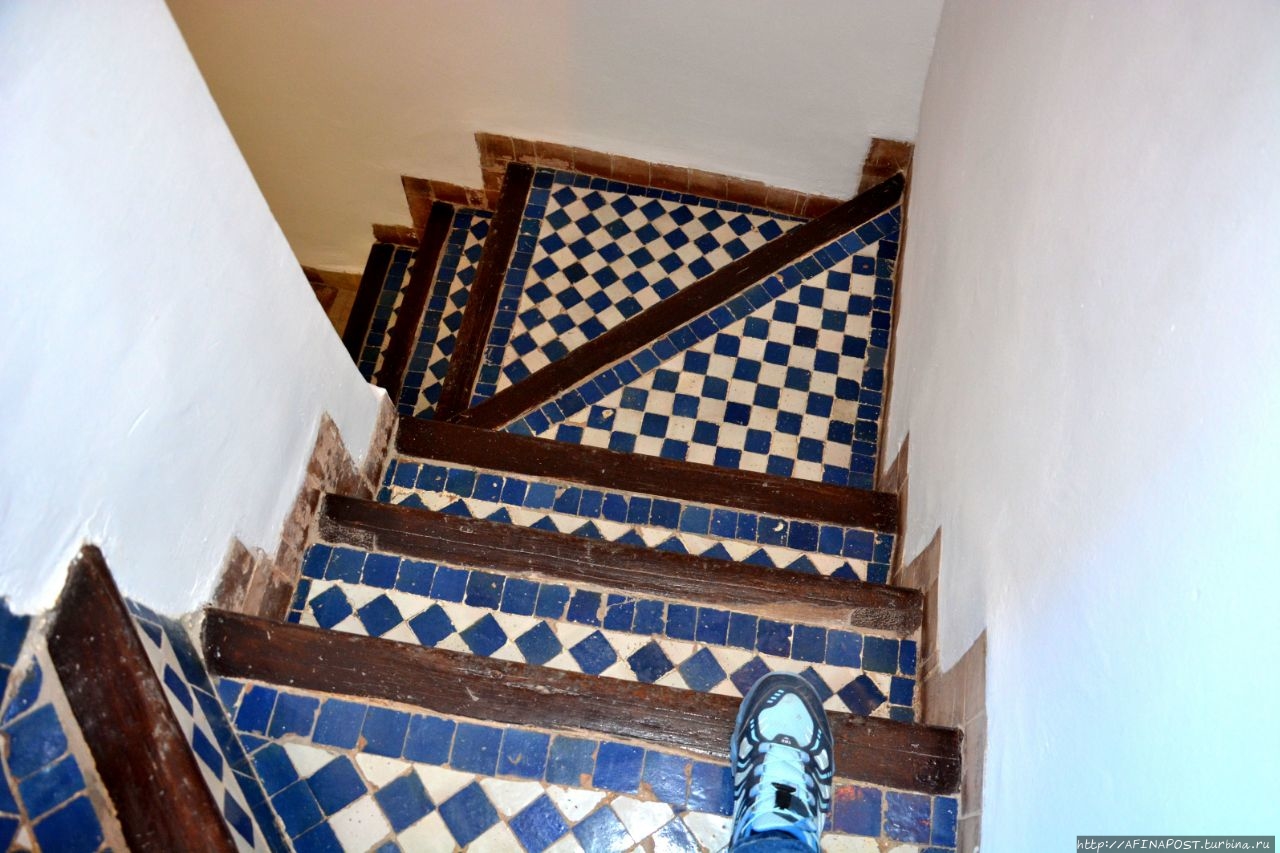 Мы знали, что Марокко — страна, где фантазии становятся реальностью, и вот, жребий выбранного в зимней Москве марокканского отеля в Фесе, привёл нас к неприметной двери в высокой стене узкого переулочка. За порогом этой двери перед нами предстал самый настоящий сказочный мини-дворец с маленьким садом, фонтаном, крошечным внутренним двором, куда выходят все окна номеров и узенькой лестницей ведущей на крышу или можно сказать — смотровую площадку.