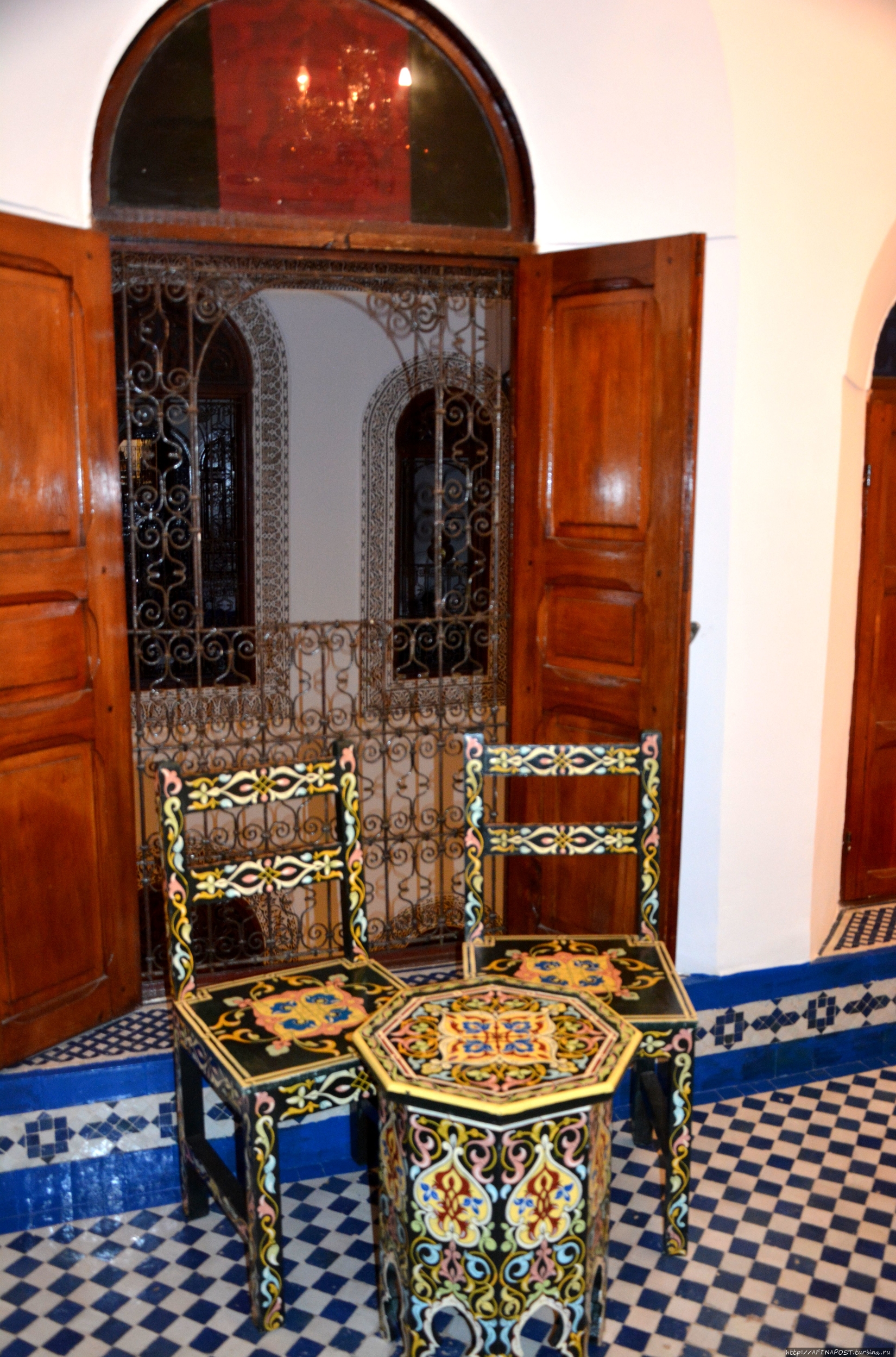 Отель "Риад Фарах", затерявшийся в медине Фес-эль-Бали, самостоятельно найти не смогли — нам помог прохожий за несколько монет найти в лабиринте улочек нужную дверь.