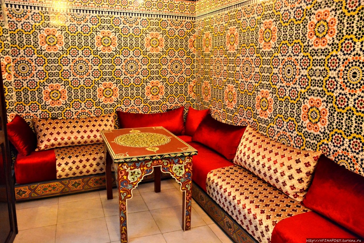 Наш отель не относился к разряду дворца, но очень мило оформлен в марокканском стиле с использованием подлинных предметов старинных интерьеров, которые создают атмосферу уюта, покоя и безмятежности.