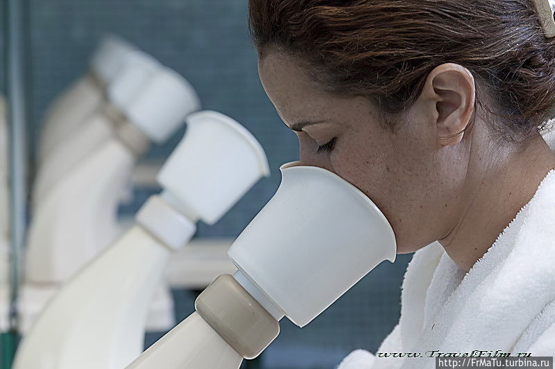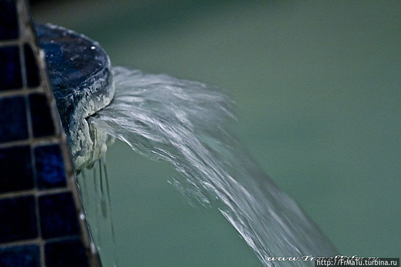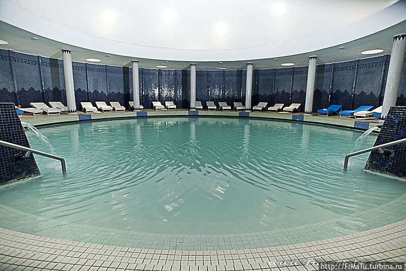 В бассейн круглой формы под куполом, вода струится двумя водопадами. Находиться в воде рекомендуется 10 -15 мин.