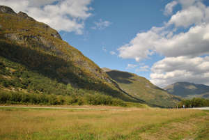 • При выезде из Боргундского  3-километрового тоннеля справа находится дорога к ставкирке (на фотографии слева).