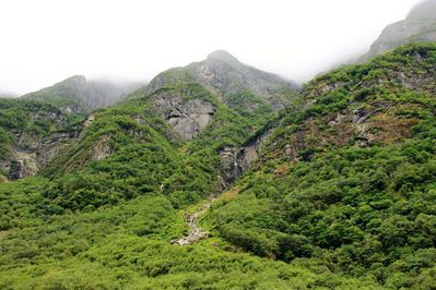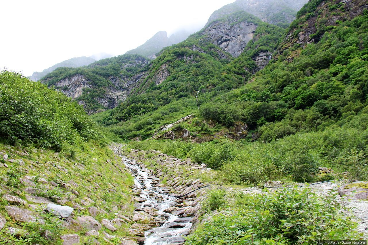 Дорога проходит то по правому, то по левому склону очень узкой долины, преодолевая 20 туннелей и несколько раз пересекает бурную горную реку, при этом не имея на своём пути ни одного моста. Отказавшись от строительства мостов, железнодорожники изменили русло реки. Они проложили его в туннелях под железной дорогой.