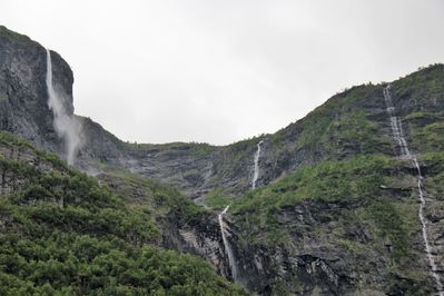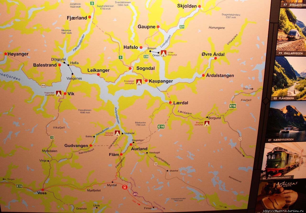 Жемчужиной городка является Фломская железная дорога. Это один из наиболее привлекательных и захватывающих железнодорожных участков в мире. Она соединяет высокогорную станцию Мюрдал, Бергенской железной дороги с городком Флом. Из окна поезда перед нами открываются самые дикие и величественные ландшафты норвежской горной природы. Здесь мы увидели реки, прорезающие глубокие ущелья, водопады, омывающие крутые горные склоны с покрытыми снегом вершинами.